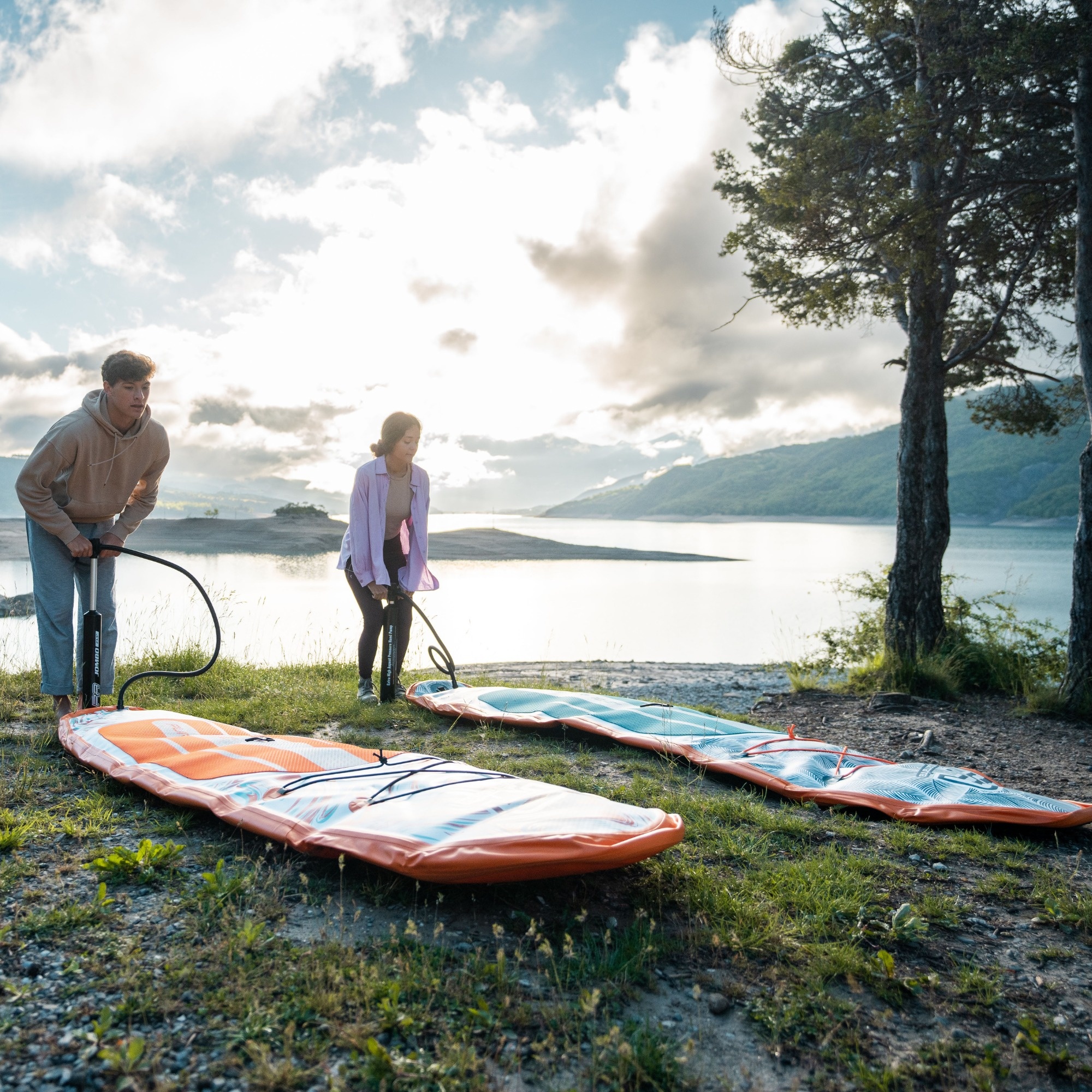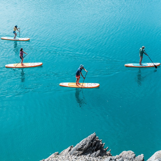 Zestaw jest kompletny i zawiera: torbę transportową, manualną pompkę z manometrem, czteroczęściowe aluminiowe wiosło (w wersji Minicombo jako rozwiązanie SUP-kajak), leash oraz statecznik Slide-in. Po napompowaniu możesz od razu wyjść na wodę.