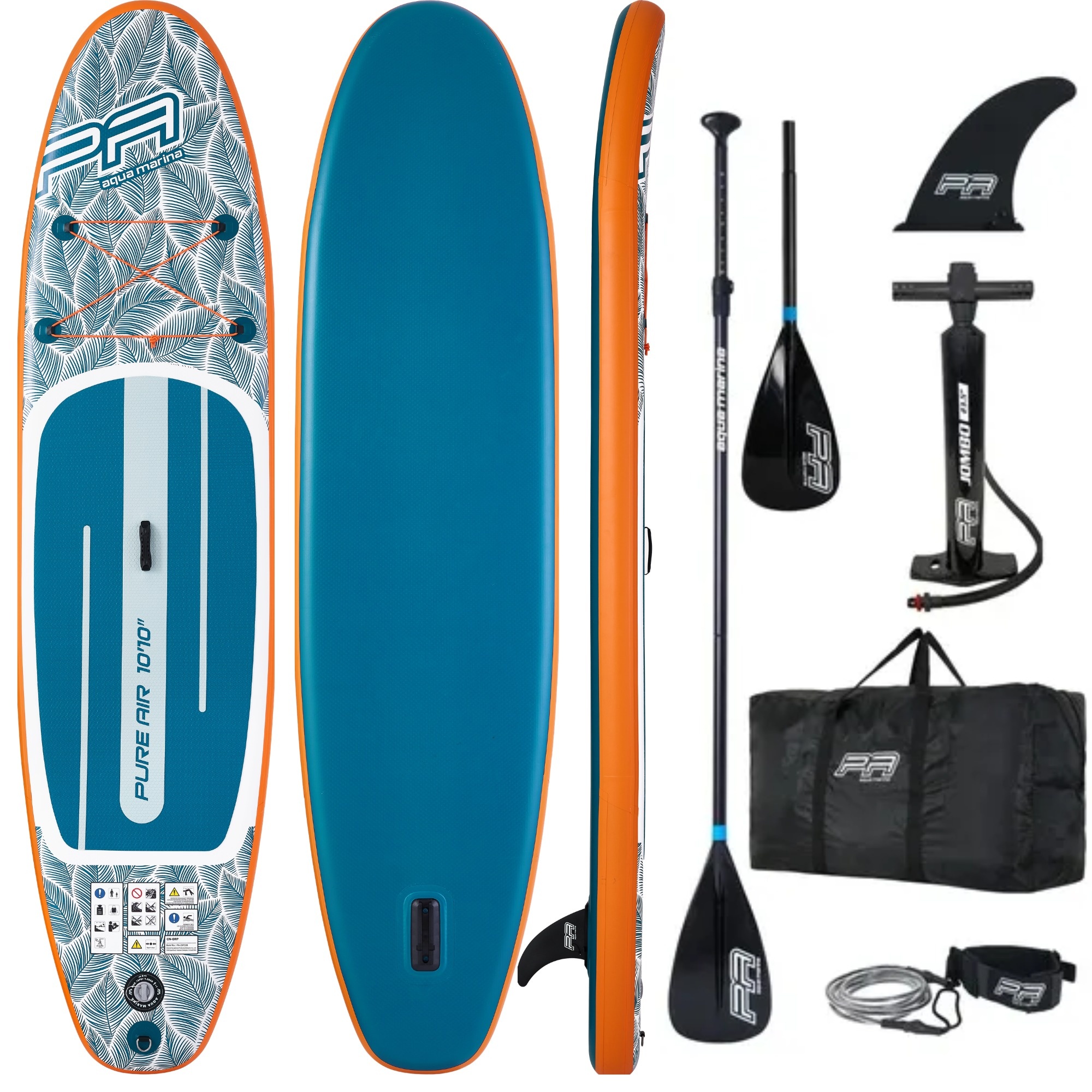 Aqua Marina Pure Air Tropic Minicombo 10'10'' to pompowana deska SUP do rekreacyjnego pływania na spokojnej wodzie, w wersji Tropic Blue. Wiosło SUP-kajak z zestawu pozwala wiosłować zarówno na stojąco, jak i w pozycji siedzącej, gdy chcesz odpocząć na dłuższym dystansie. Zestaw jest kompletny - po napompowaniu możesz od razu ruszyć na wodę. Max. ciśnienie: 15 psi.