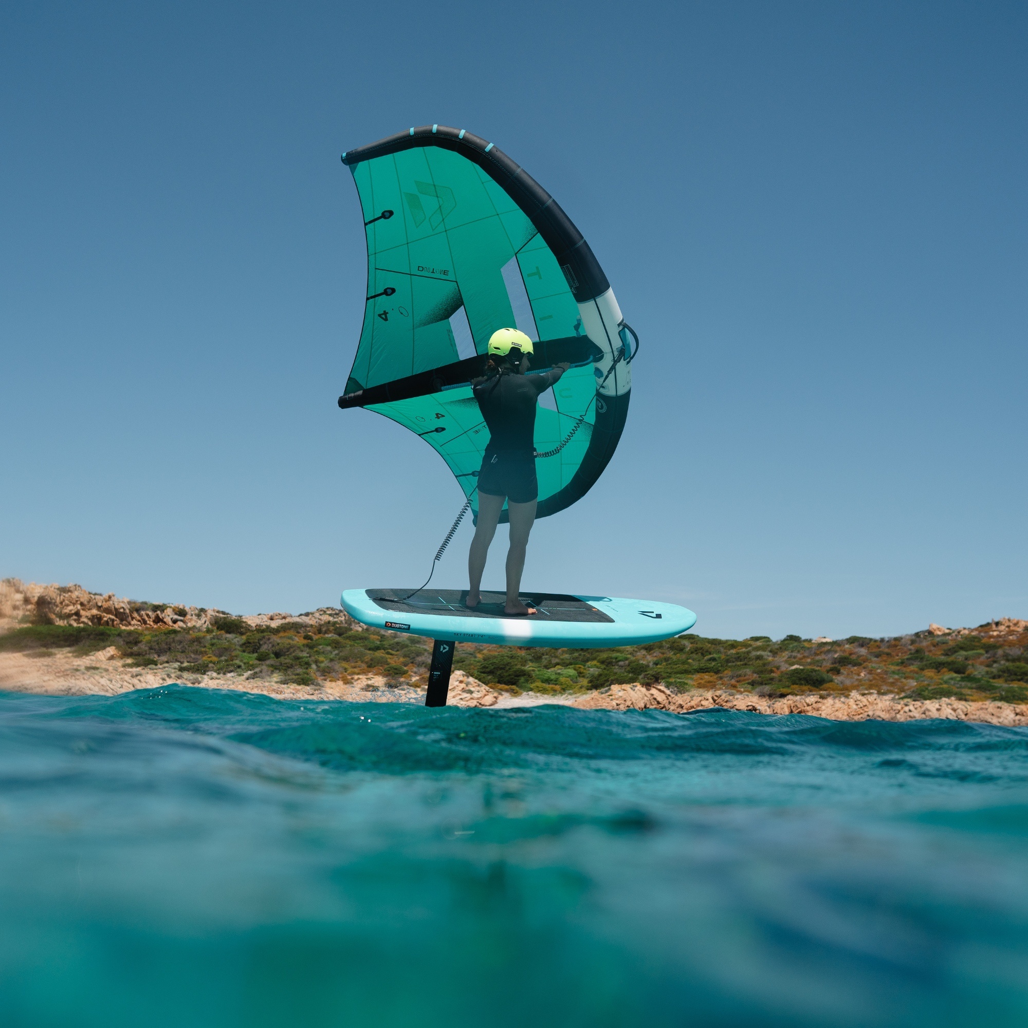 Sky Start DST został zaprojektowany jako deska, która ma maksymalnie ułatwić pierwsze kroki w wing foilingu. Powstała przy udziale szkół i centrów testowych, więc jej kształt podporządkowano temu, co naprawdę pomaga początkującym: stabilności, łatwemu ustawieniu się na desce i spokojnemu wejściu na foila.