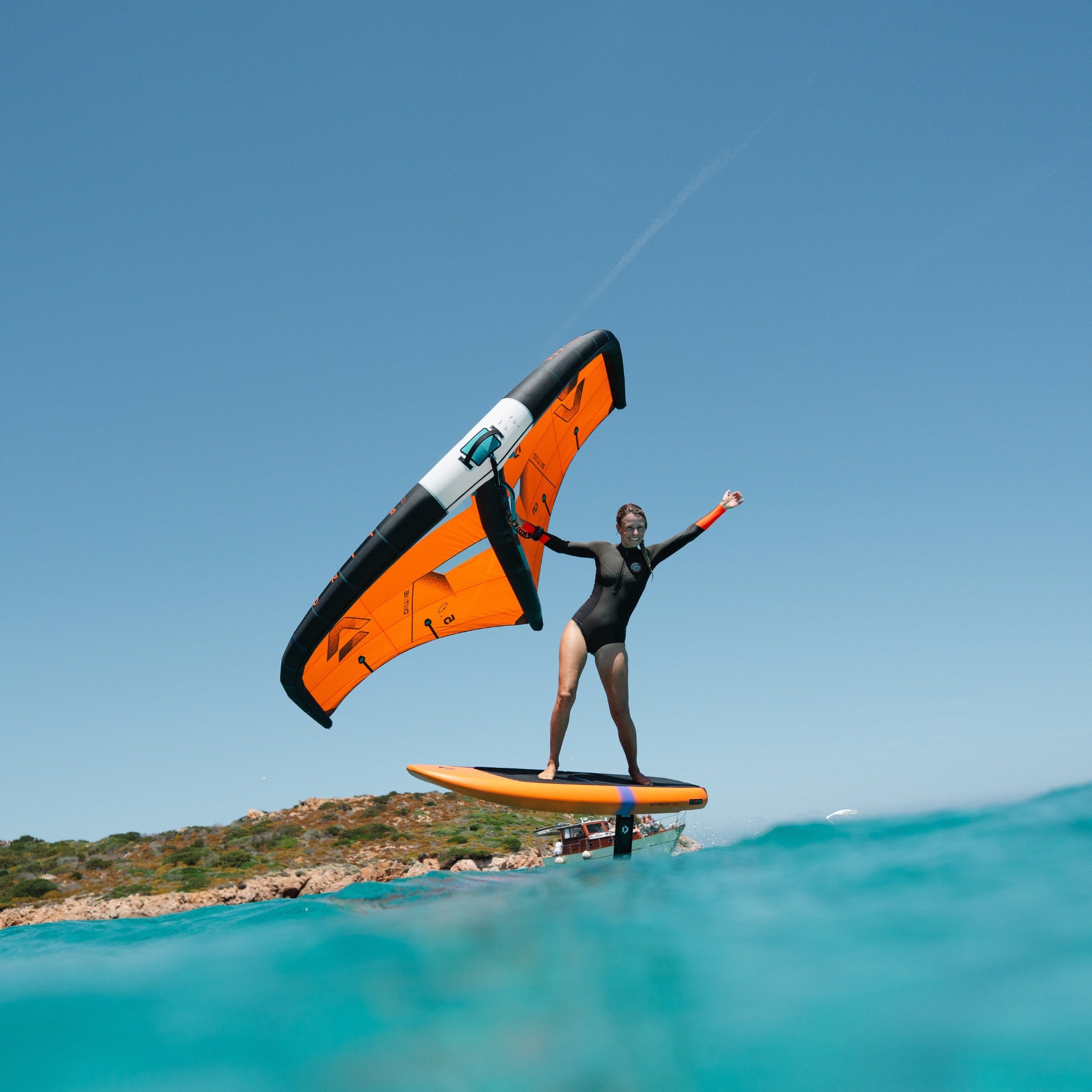 Dłuższy i węższy outline pomaga desce szybciej nabierać prędkości i stabilniej prowadzić się przed wejściem na foila. Dzięki temu starty są bardziej przewidywalne, a przejście z pływania wypornościowego do lotu odbywa się płynniej i z mniejszym wysiłkiem.