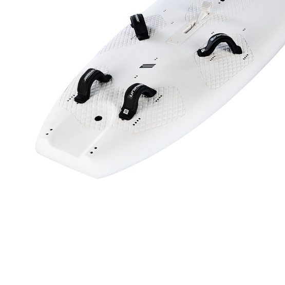 Deska wykonana jest w trwałej, formowanej konstrukcji, odpornej na codzienne użytkowanie i uszkodzenia typowe dla intensywnie wykorzystywanego sprzętu szkoleniowego. Pełny pokład EVA zwiększa komfort i bezpieczeństwo, a zintegrowany ochraniacz dziobu pod warstwą EVA chroni deskę przed uderzeniami żagla i zgnieceniami podczas manewrowania sprzętem.