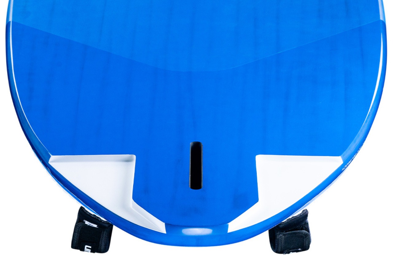 Pod stopami, w strefie strapów, zastosowano dno w kształcie litery V, które ułatwia czyste wybicie i szybkie rozpędzanie się deski. Obniżony pokład w rejonie masztu obniża środek ciężkości zestawu, co przekłada się na większą stabilność i lepszą kontrolę, szczególnie w zmiennych warunkach wiatrowych.