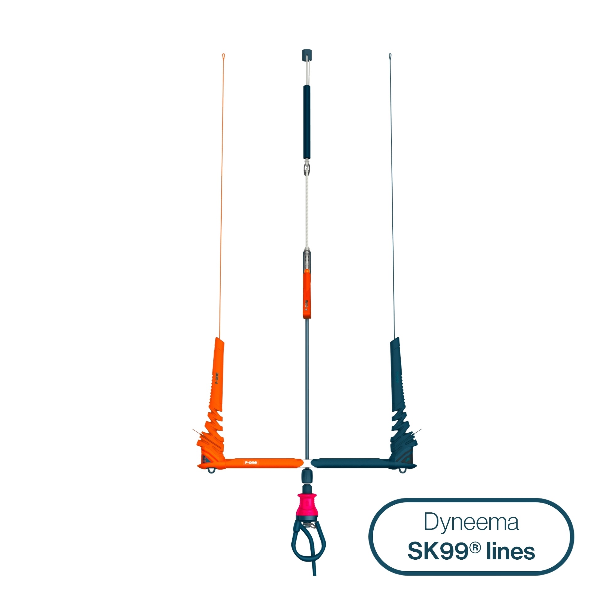 Bar pracuje w konfiguracji 4-linowej z systemem 4 Lines Hub, który pozwala na podłączenie lifeline do jednej przedniej linki. Końcówki linek zakończone są pętlami typu lark’s head, kompatybilnymi z bridlami kite’ów F-ONE.