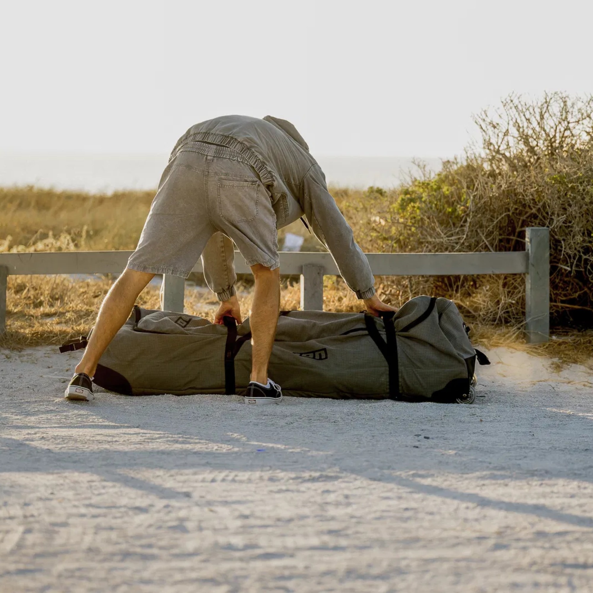 Podczas wyjazdów ze sprzętem znaczenie ma nie tylko pojemność, ale też waga samej torby. Gearbag Kite Core wykorzystuje lekką konstrukcję opartą na recyklingowanym materiale PET 450D z powłoką PU, dzięki czemu dobrze znosi codzienne użytkowanie w trasie, a jednocześnie nie dokłada zbędnych kilogramów do bagażu. To szczególnie ważne podczas podróży lotniczych i dłuższych przejazdów autem.