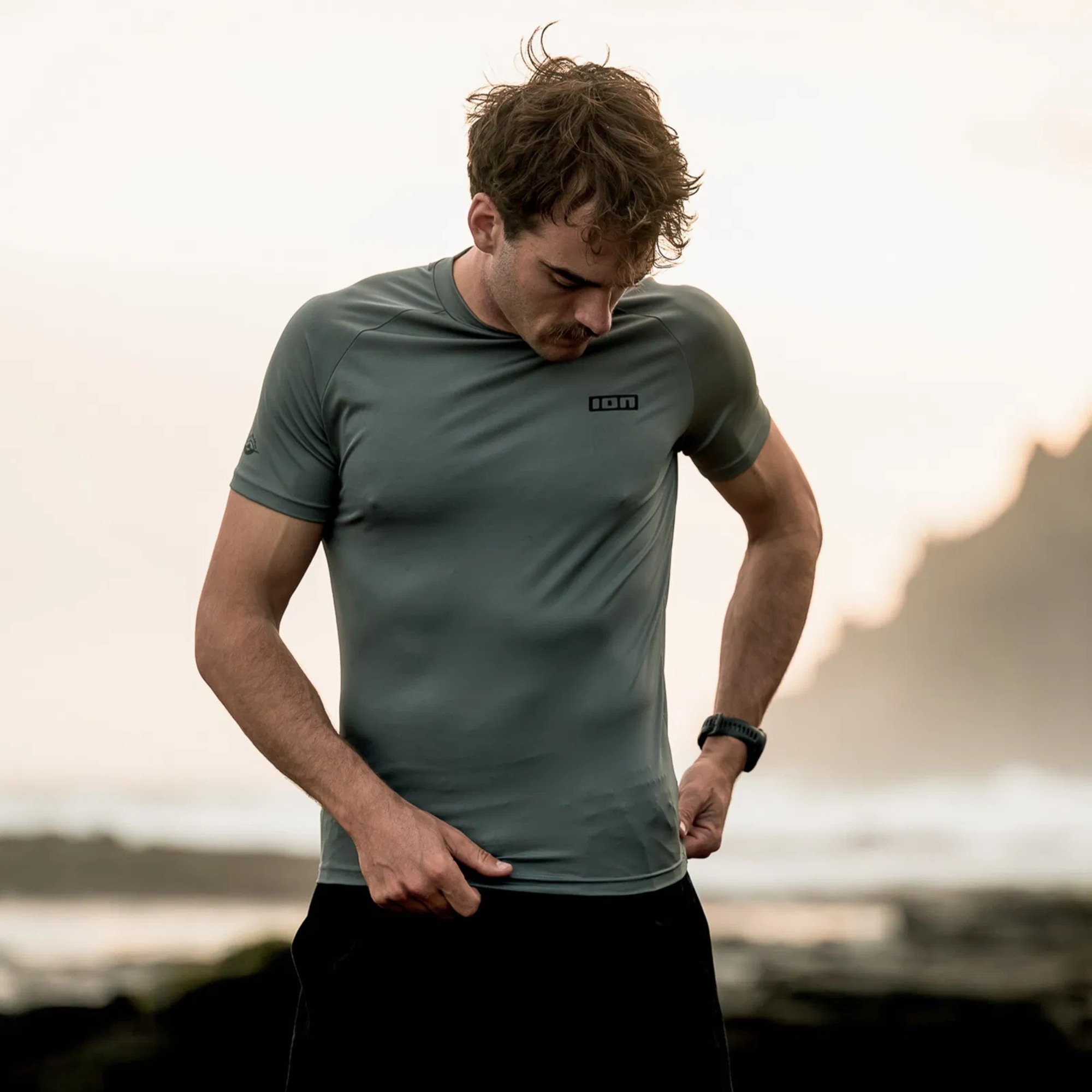 ION Rashguard SS to męska lycra z krótkim rękawem do kitesurfingu, wingfoilingu, surfingu i SUP na ciepłe dni, gdy chcesz ochrony skóry bez neoprenu. Dopasowany, elastyczny krój pracuje z ciałem, a UV Protection (UPF 35-50+ w zależności od koloru) ogranicza ekspozycję na słońce. Rękawy raglanowe zmniejszają liczbę szwów na barkach, a Slip_Loop pozwala spiąć lycrę z boardshortami, żeby nie podjeżdżała.