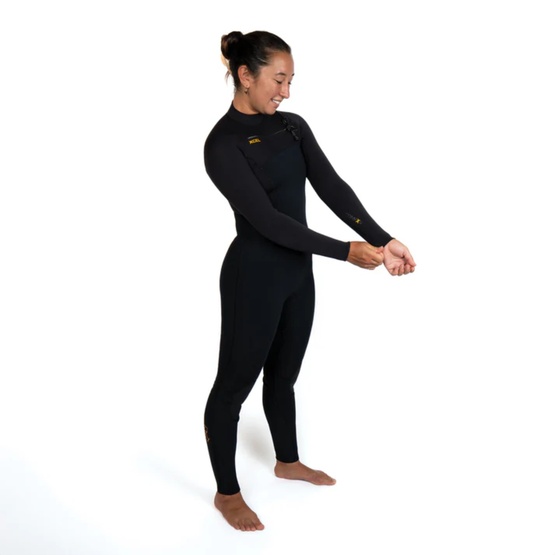 Zewnętrzny Channel Flex zwiększa rozciągliwość neoprenu, a jednoczęściowe panele z przodu i z tyłu pogłębiają naturalny zakres ruchu. Krój dopracowano pod kątem dopasowania do kobiecej sylwetki, co ułatwia wiosłowanie, starty z deską i dynamiczne manewry.