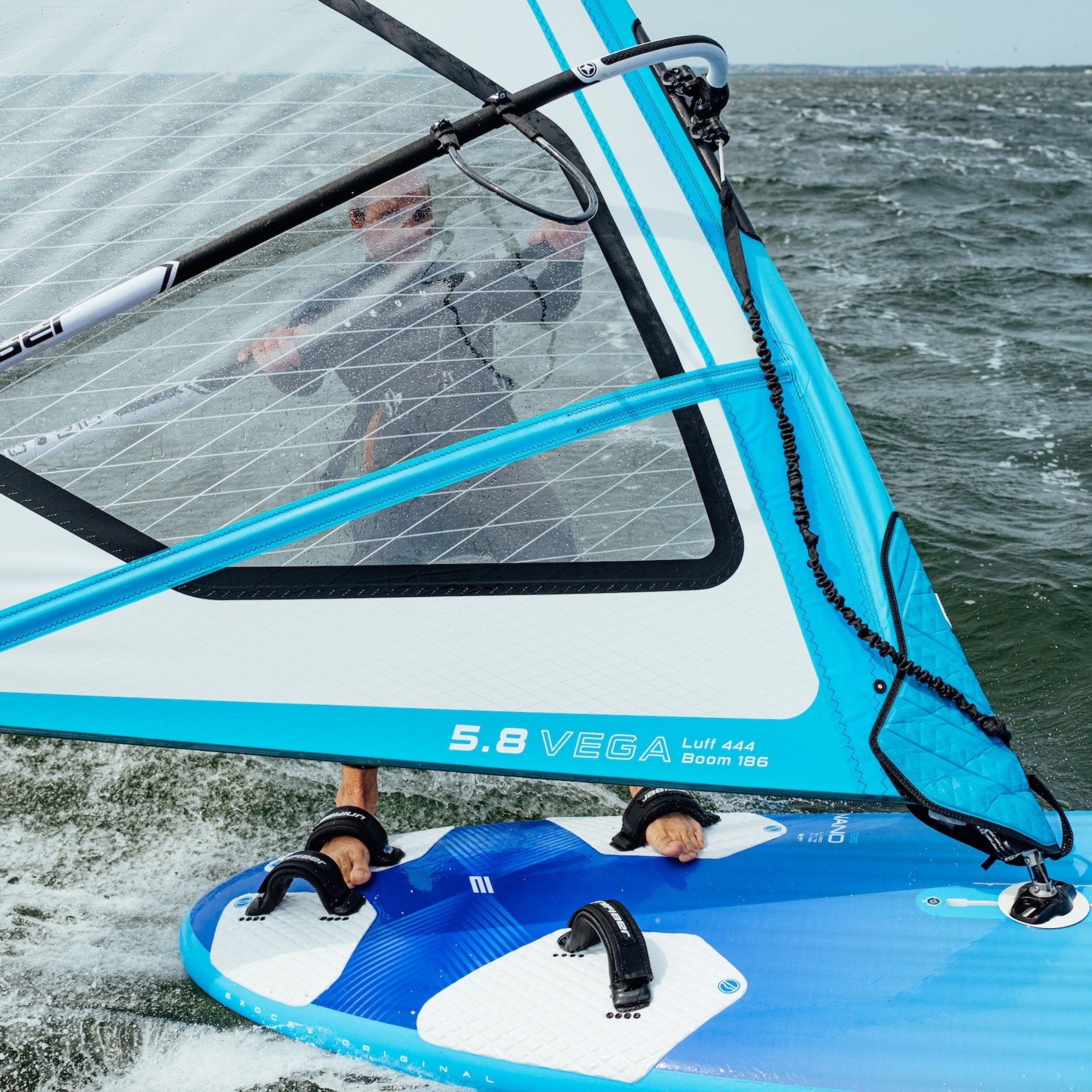 Vega V2 został wyposażony w ochronę przy stopie masztu, która pomaga chronić pokład deski i jest bardziej przyjazna dla bosych stóp podczas obsługi sprzętu. Dodatkowo rolki przy tacku ułatwiają naprężenie downhaulu, dzięki czemu przygotowanie żagla przebiega sprawniej i z mniejszym wysiłkiem.
